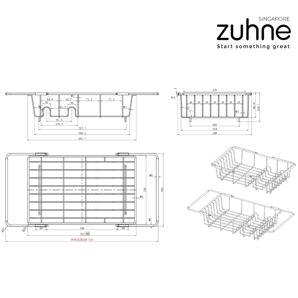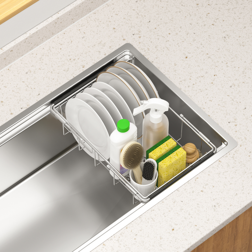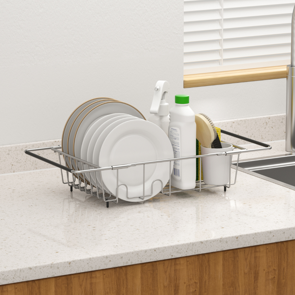 Model: Reeva Extendable Stainless Steel Dish Drying Wire Basket / Rack