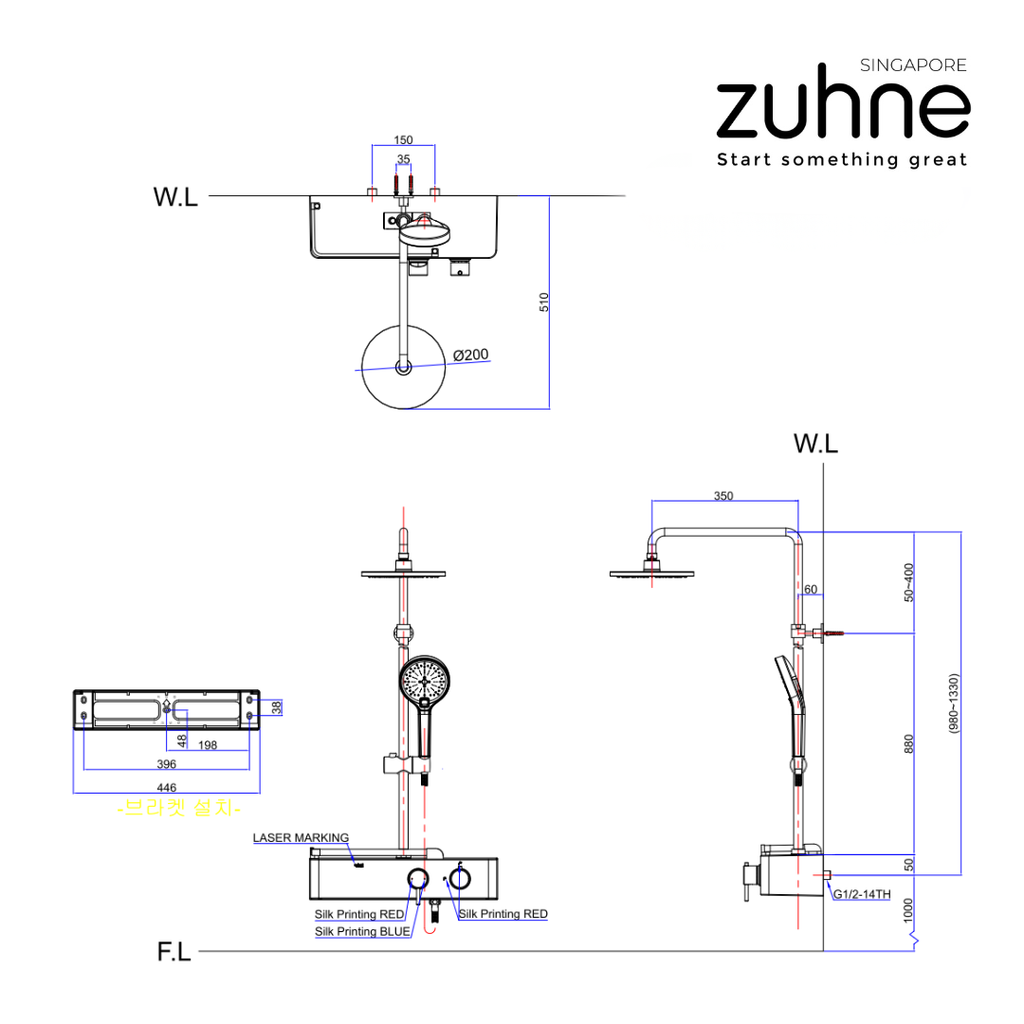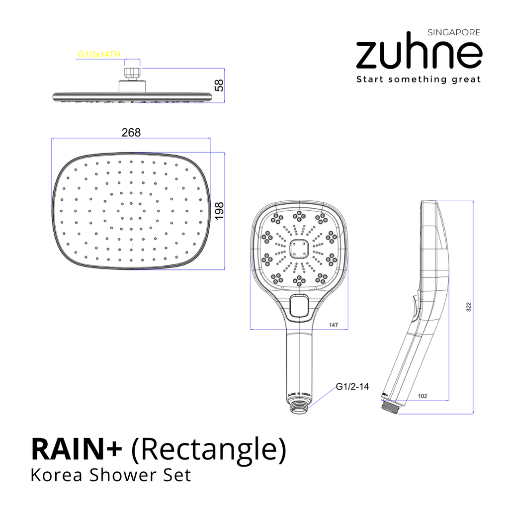 The ZUHNE Rain+ Shower Set, crafted in Korea, combines a soothing rain shower, a multi-spray hand shower, and our signature SmartTray™ shelf — a handy built-in ledge for your shampoo, soap, and bath gels.